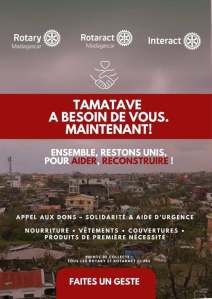Le Rotary Club Antananarivo Tsimbaroa essaye de faire sa part à l’édifice humain et c’est grâce à la générosité de chacun qu’il pourra aider les familles et les enfants dans le besoin. Comme on dit à Madagascar : erikerika maha-tondra-drano ou en français ce sont les petits ruisseaux qui font les grandes rivières. Le moindre euro compte pour ces enfants et ces familles.