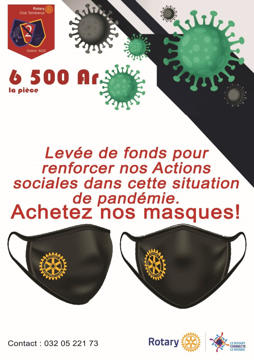 Nous devons poursuivre nos Actions de secourir les plus démunis pendant cette crise sanitaire sans précédent. Pour nous aider, vous pouvez faire l’achat de masque cache-bouche lavable (triple couche) à la Pharmacie HASIMBOLA dans l’enceinte de Jumbo Ankorondrano.