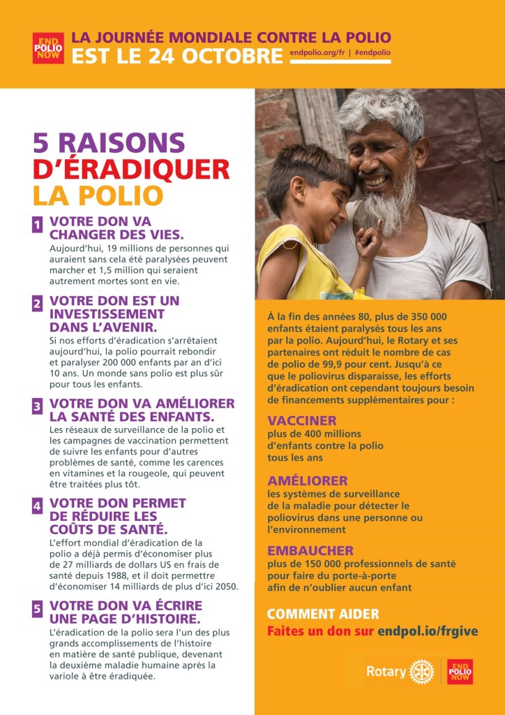 Ensemble, passons à l’action pour éradiquer la polio pour toujours. Votre don sauvera des vies et offrira à un enfant la chance d’avoir un avenir en bonne santé. Faites un don aujourd’hui :