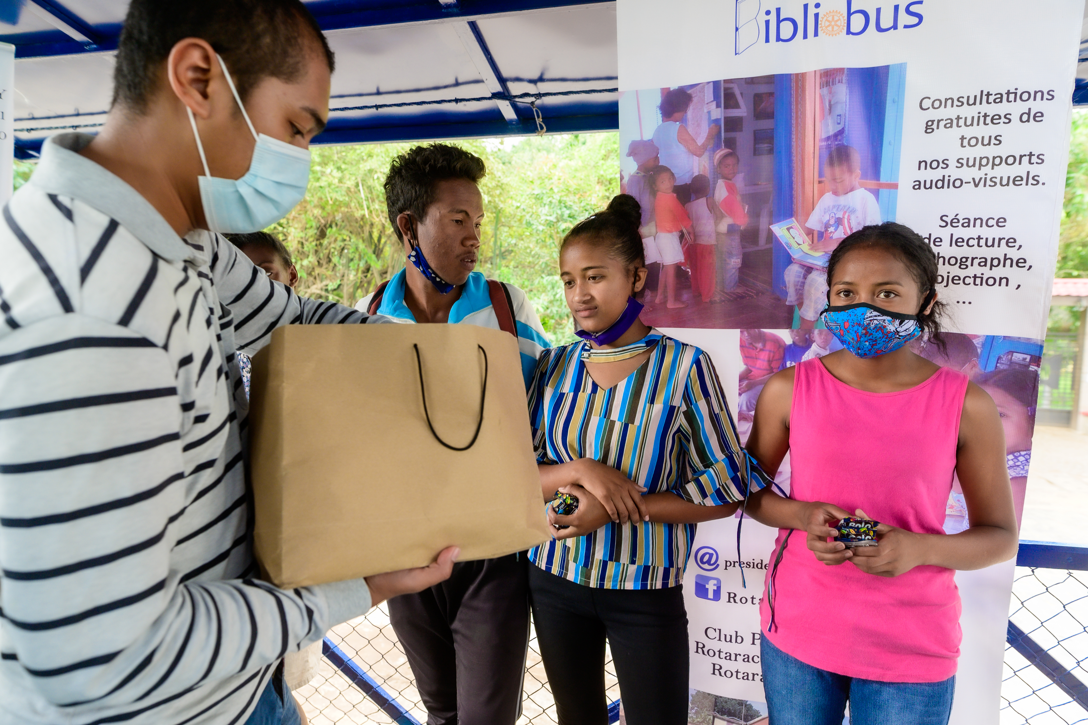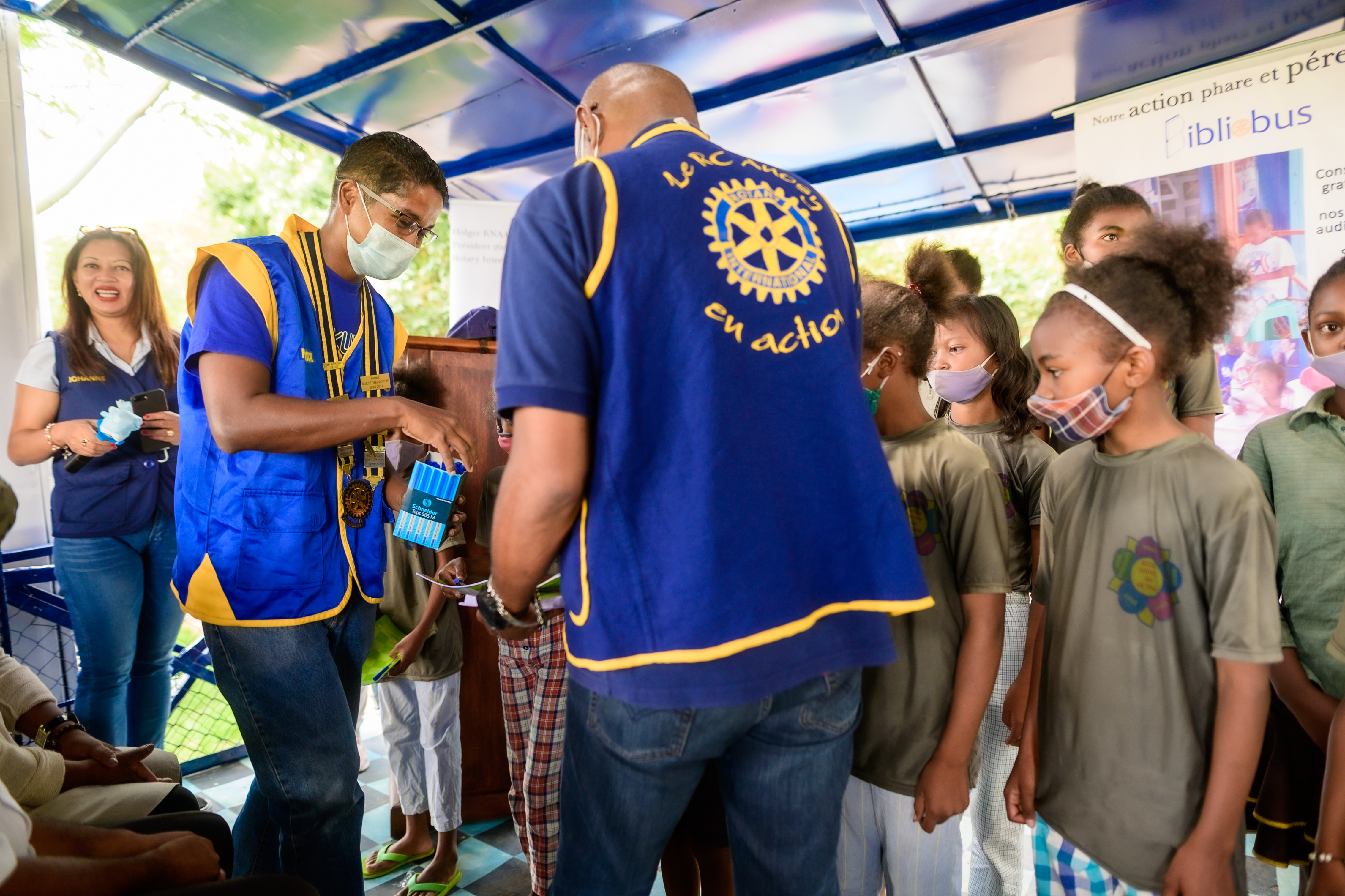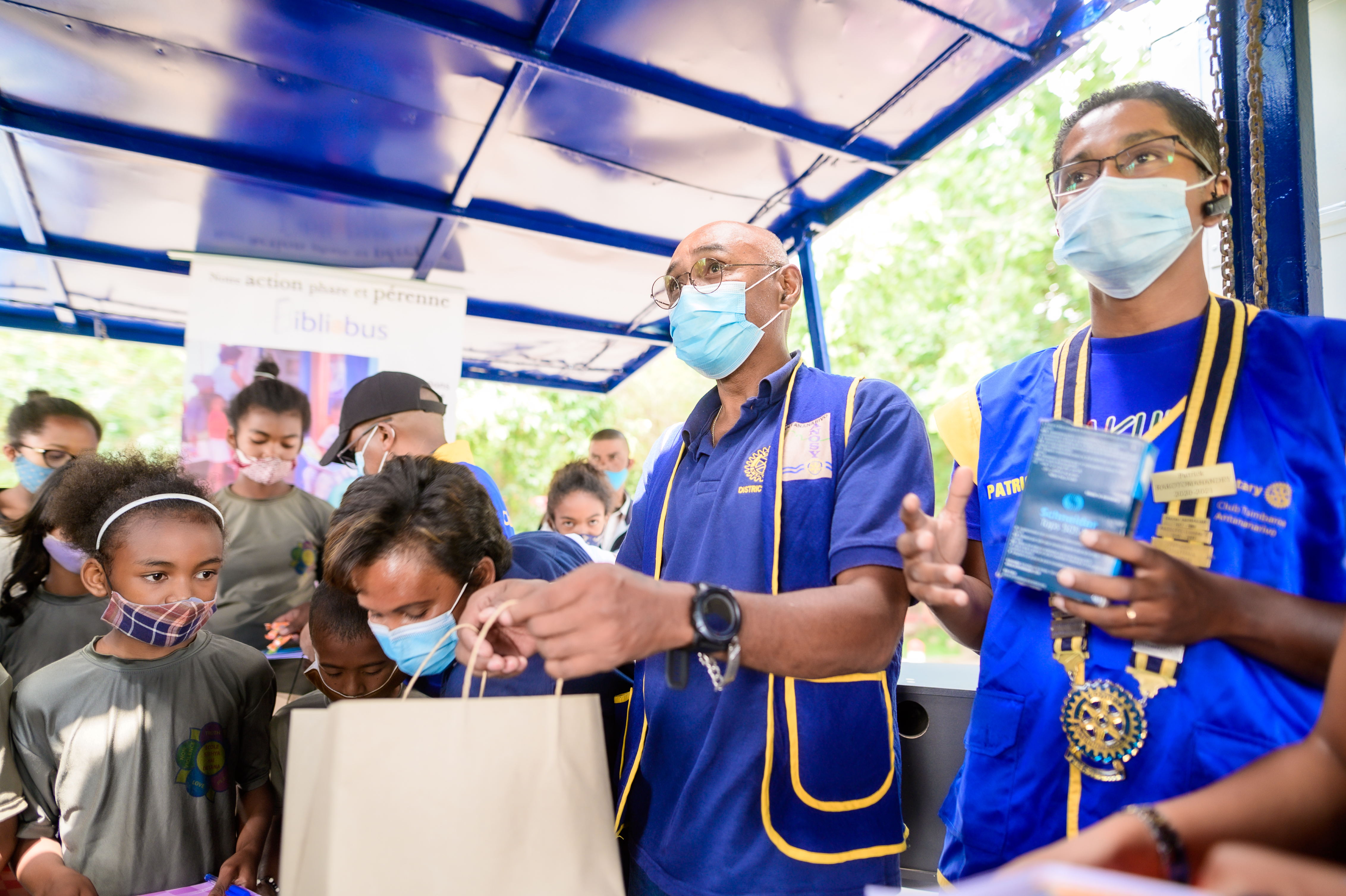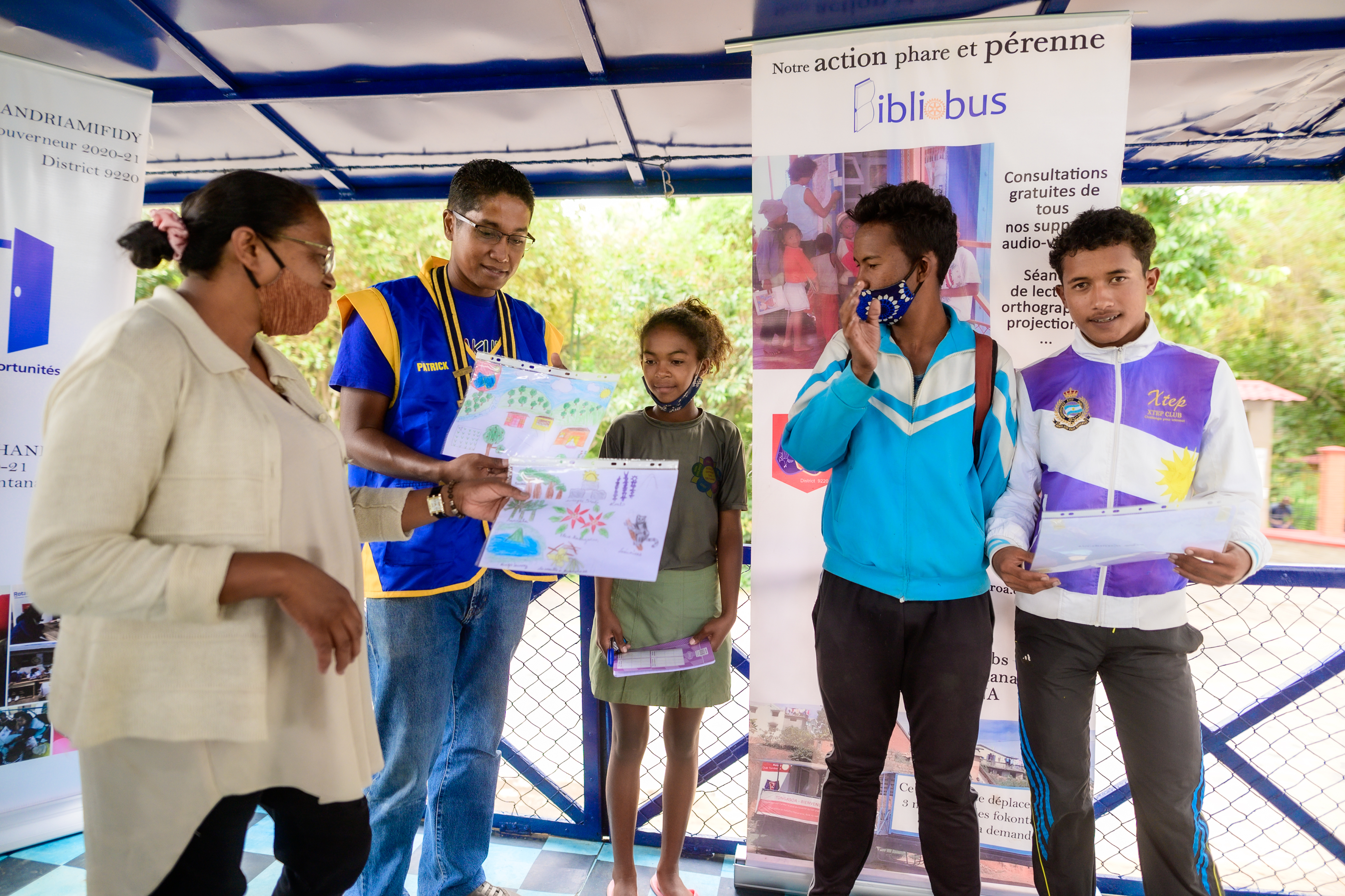 La journée du samedi 6 février 2021, le Rotary Club Antananarivo Tsimbaroa a procédé à la remise des clés du Bibliobus au Fokontany d’Avarabohitra Itaosy en présence de l’adjoint au maire de la commune d’Itaosy, du représentant du chef Fokontany, de la responsable de l’éducation. Le Gouverneur de District 9220 Hugues Emmanuel RANDRIAMIFIDY dit Doudou a également fait l’honneur de sa présence durant toute cette journée d’action et de camaraderie. Ce fut également l’occasion pour réceptionner définitivement les travaux de réhabilitation du Bibliobus qui a fait peau neuve. Les enfants du quartier ont également reçu des dons de cahiers, de stylos et quelques douceurs. Un concours de dessin sur le thème de l’environnement a également été organisé où les 3 premiers ont été récompensés.