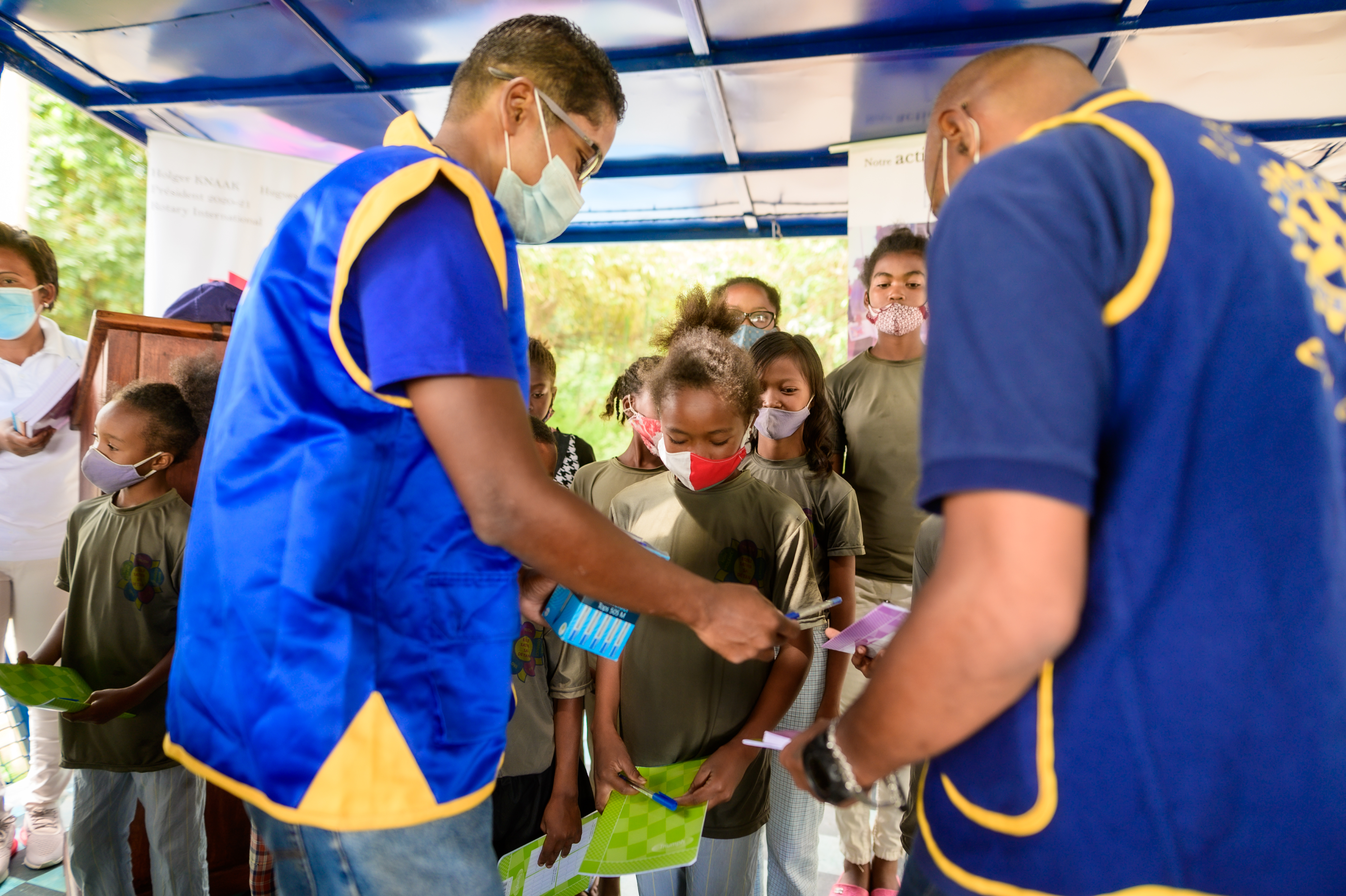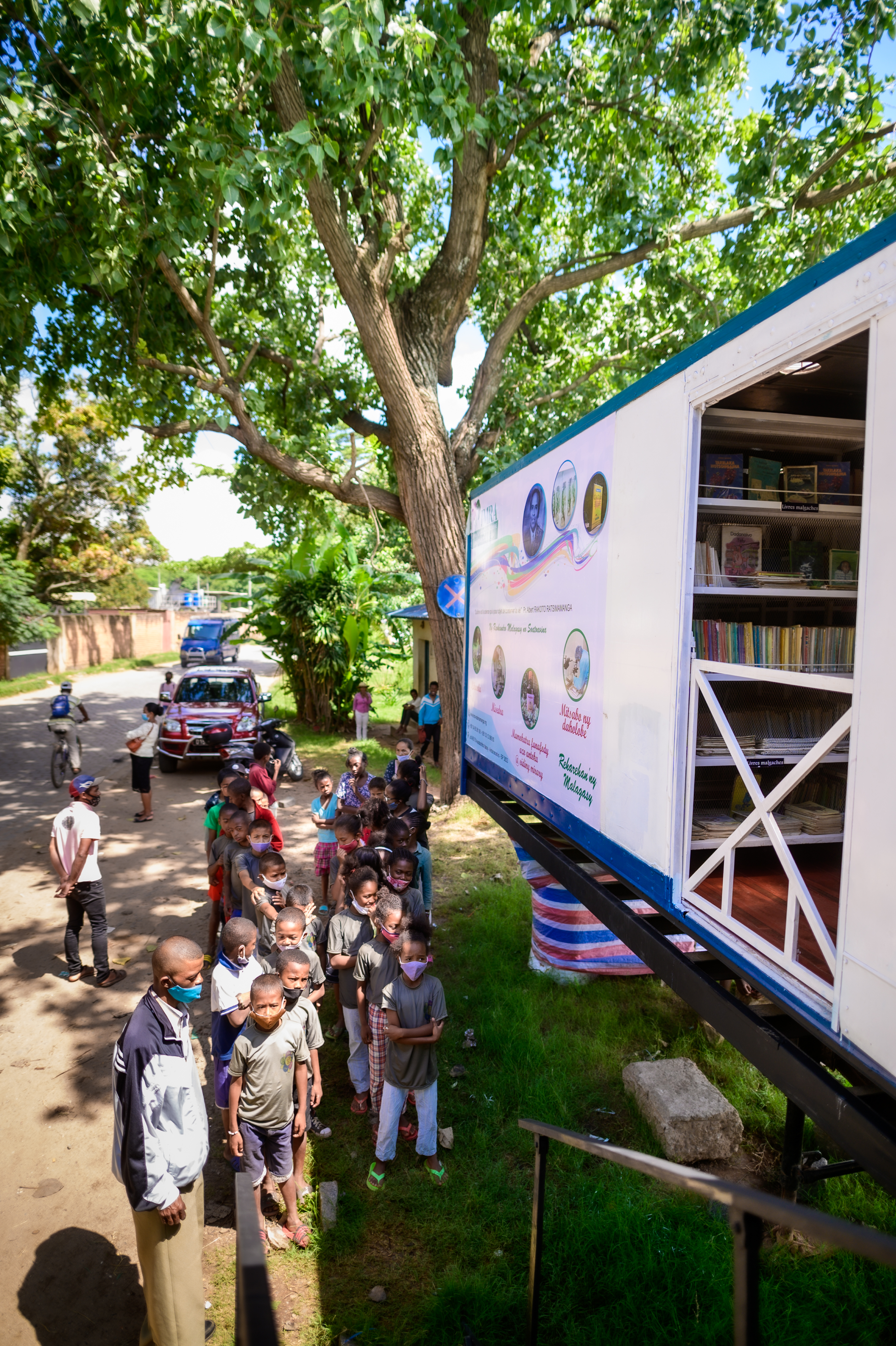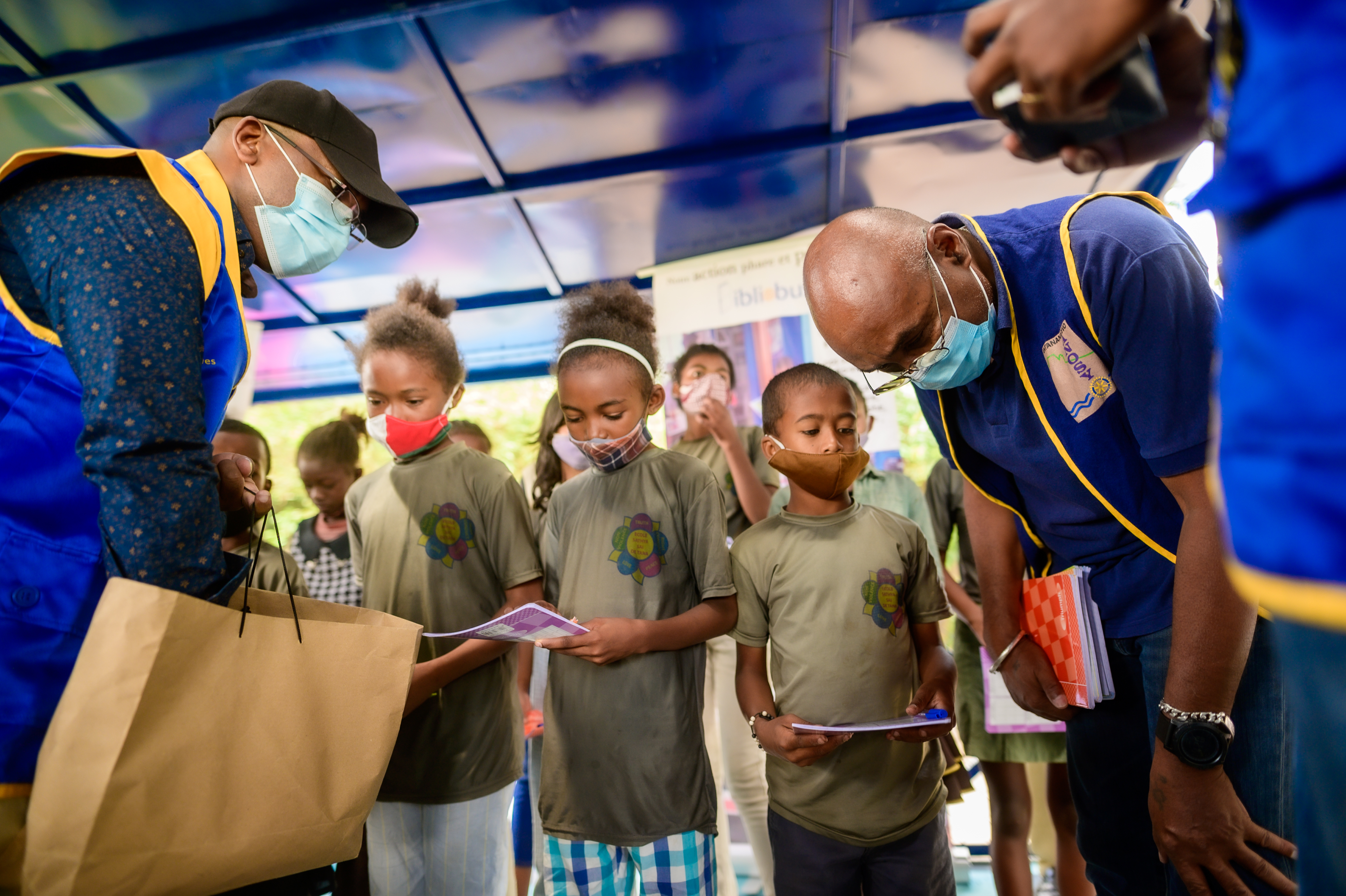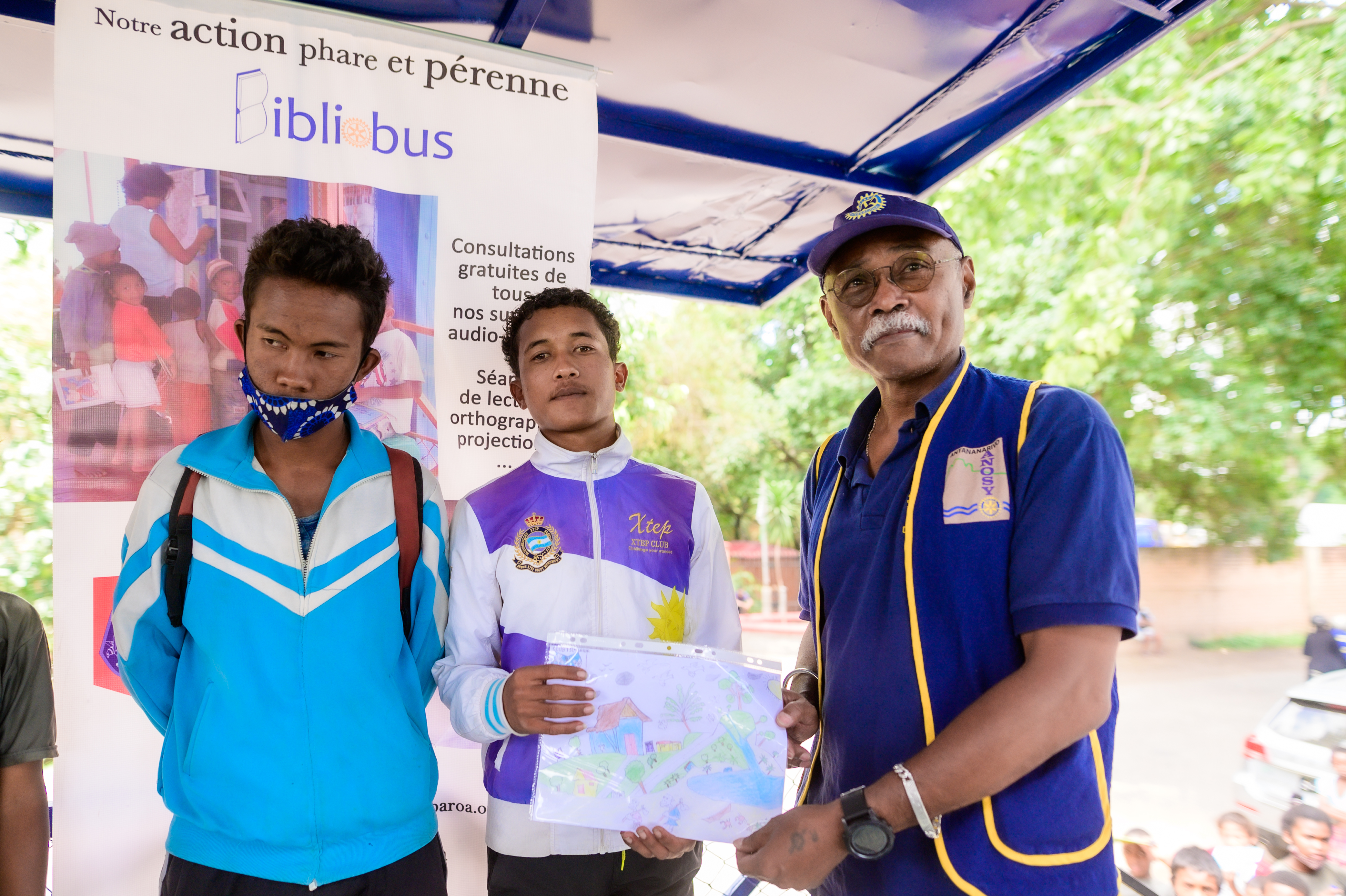 La journée du samedi 6 février 2021, le Rotary Club Antananarivo Tsimbaroa a procédé à la remise des clés du Bibliobus au Fokontany d’Avarabohitra Itaosy en présence de l’adjoint au maire de la commune d’Itaosy, du représentant du chef Fokontany, de la responsable de l’éducation. Le Gouverneur de District 9220 Hugues Emmanuel RANDRIAMIFIDY dit Doudou a également fait l’honneur de sa présence durant toute cette journée d’action et de camaraderie. Ce fut également l’occasion pour réceptionner définitivement les travaux de réhabilitation du Bibliobus qui a fait peau neuve. Les enfants du quartier ont également reçu des dons de cahiers, de stylos et quelques douceurs. Un concours de dessin sur le thème de l’environnement a également été organisé où les 3 premiers ont été récompensés.