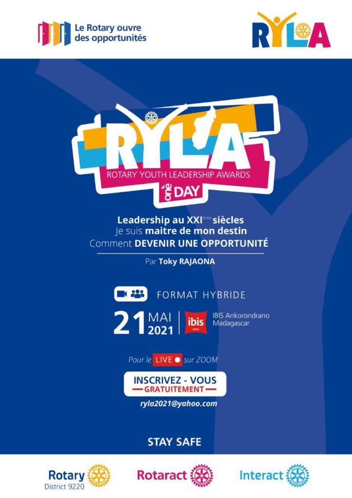 Cette année le RYLA (Rotary Youth Leadership Awards) s’est tenu le 21 mai 2021 toute la journée en hybride, c’est-à-dire à la fois en présentiel à l’hôtel IBIS Ankorondrano mais aussi en virtuel via Zoom.