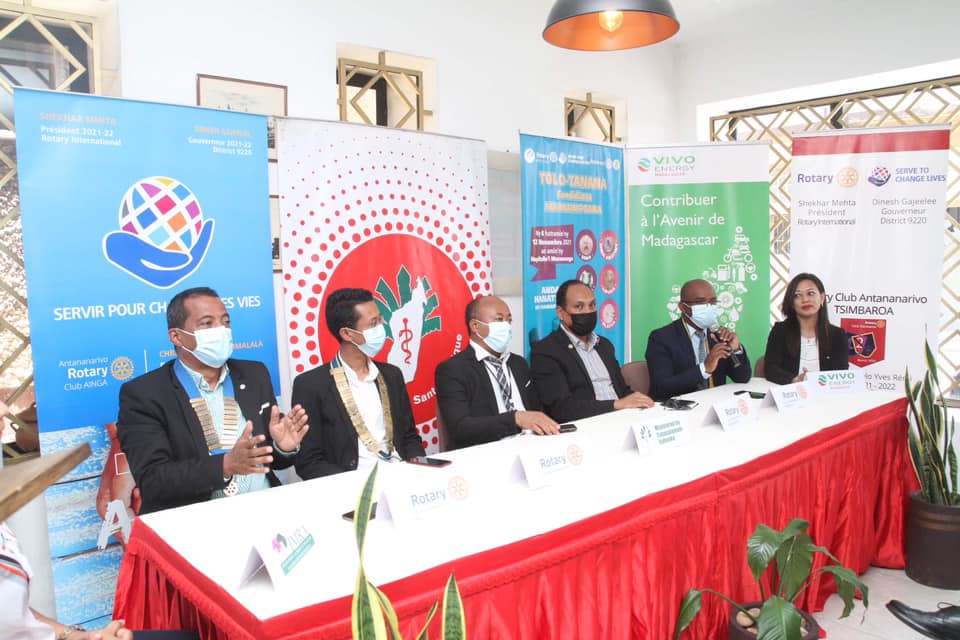 Le Rotary international représenté par le Rotary club Antananarivo Tsimbaroa , le Rotary club Antananarivo Doyen, le Rotary Club Ainga, et le Rotary club Ambohitsirohitra en partenariat avec le Ministère de la santé Publique et en présence des différents partenaires et sponsors, ont tenu ce jour un point de presse sur l’action Tolotanana Chirurgie gratuite qui se déroulera au CHU de Moramanga du 06 au 12 Novembre 2021.