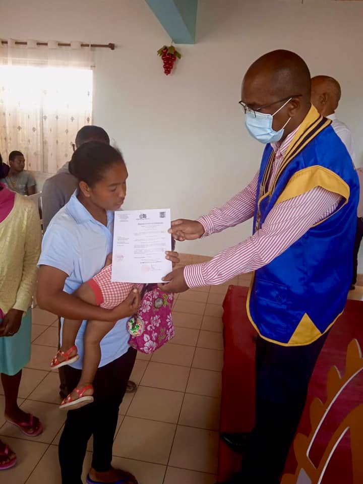 Le Rotary Club Antananarivo Tsimbaroa a procédé à la distribution de copies de naissance au bénéfice des 364 enfants issus de familles vulnérables de la commune de Bemasoandro Itaosy les 06 et 11 novembre.