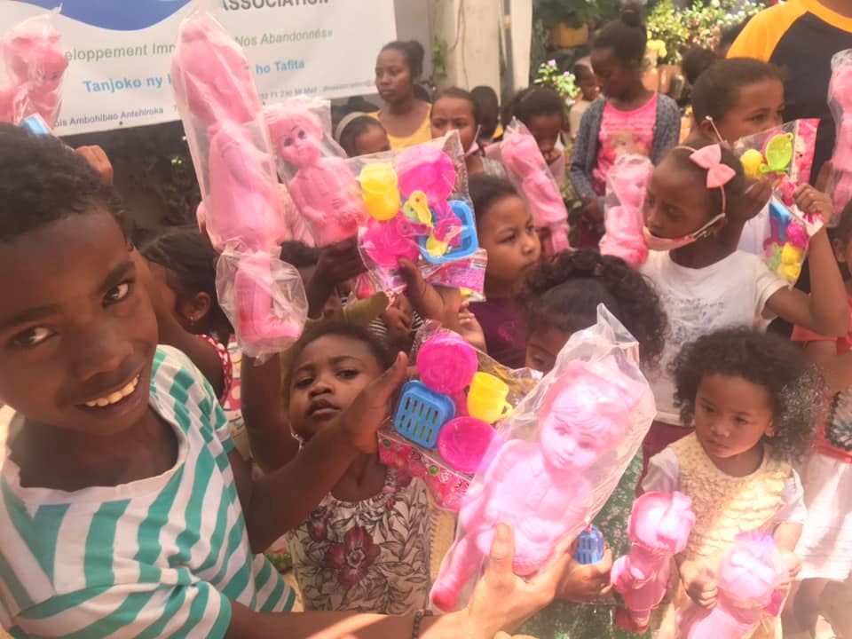 Pour la joie des enfants de DINA Association Ambohibao, le Rotary CLUB d’Antananarivo Tsimbaroa a apporté des jouets, des friandises ainsi que des ustensiles de cuisine pour la cantine et également une table à manger avec des bancs. Un repas de Noël leur a été offert par le club.