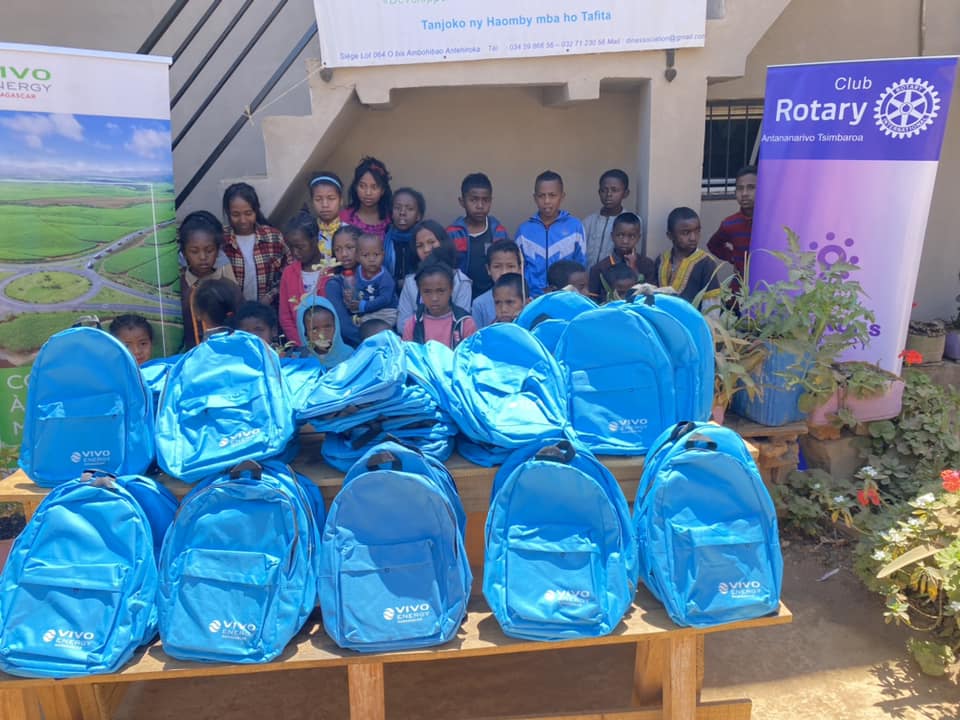 Nous remercions Vivo Energy Madagascar pour les kits scolaires que nous avons pu remettre aux enfants aujourd’hui. Un kit comprend un cartable, 2cahiers, 1 boite de crayons de couleur, des stylos, un crayon une règle et une gomme#rotaryinternational#rotarydistrict9220#rotaryclubantananarivotsimbaroa#ImaginonsLeRotary