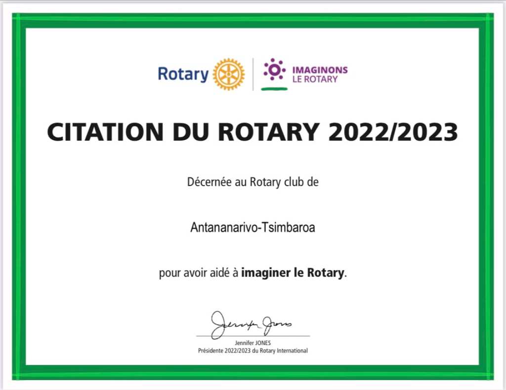 Félicitations aux membres et au comité 2022-2023! Le club a obtenu la Citation Présidentielle pendant le mandat du PRI Jennifer JONES et de Pdte Johanne RAHAMEFY en reconnaissance de ses efforts à l’atteinte des objectifs du club.