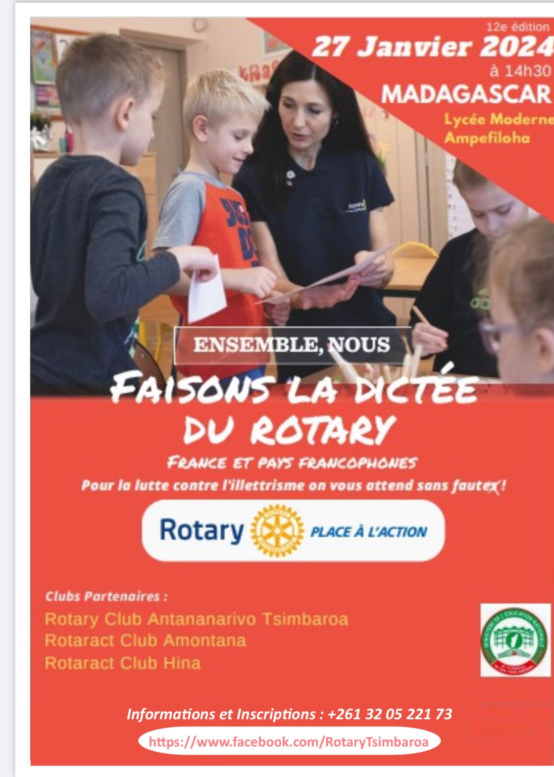 Le Rotary Club Antananarivo Tsimbaroa en partenariat avec le Ministère de l’Éducation Nationale et ses clubs filleuls Rotaract Hina et Amontana ! est fier d’avoir organisé, pour la première fois à Madagascar, le concours de Dictée du Rotary et des pays francophones, concours d’orthographe convivial ouvert à tous ![]()