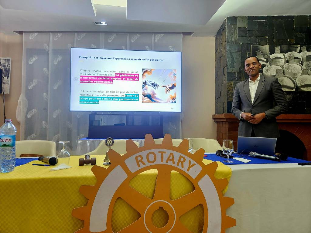 Ce soir 14 novembre 2024, pendant notre réunion statutaire, Serge Thierry Tsitoara nous a partagé un savoir nouveau, un savoir dans l’ère du temps : « L’intelligence Artificielle générative ». Un speech informatif étonnant et particulièrement pertinent pour toutes activités !