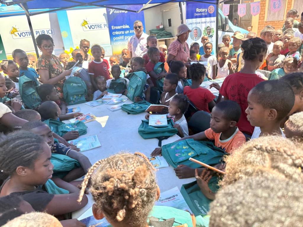 Notre sponsor pour l’occasion Vivo Energy Madagascar soucieux de la scolarité des enfants, a transmis ces 80 kits scolaires (comprenant cahiers, boîte de crayons de couleur, stylos, règles et cartable. Nous le remercions pur leur altruisme !